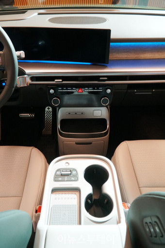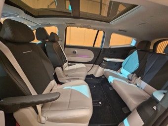 휠베이스가 3,130mm로 동급 최상위 수준이며, 실내 공간이 매우 넓습니다. 1열, 2열, 3열 모두 레그룸과 헤드룸, 숄더룸이 여유롭고, E-GMP 플랫폼 특성상 바닥이 평평합니다. 패밀리카로서 매우 적합한 구성입니다.