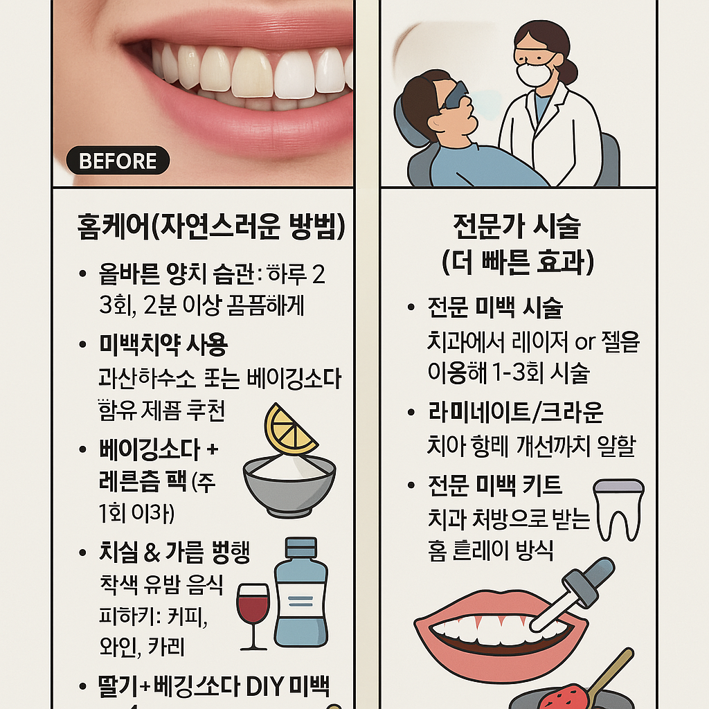 🏠 1. 홈케어 (자연스럽게 하얀 치아 만들기)